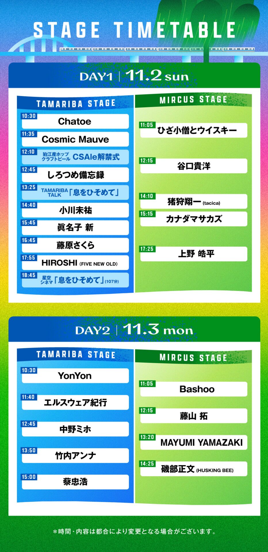 2025年11月2日(日)〜11月3日(月・祝)